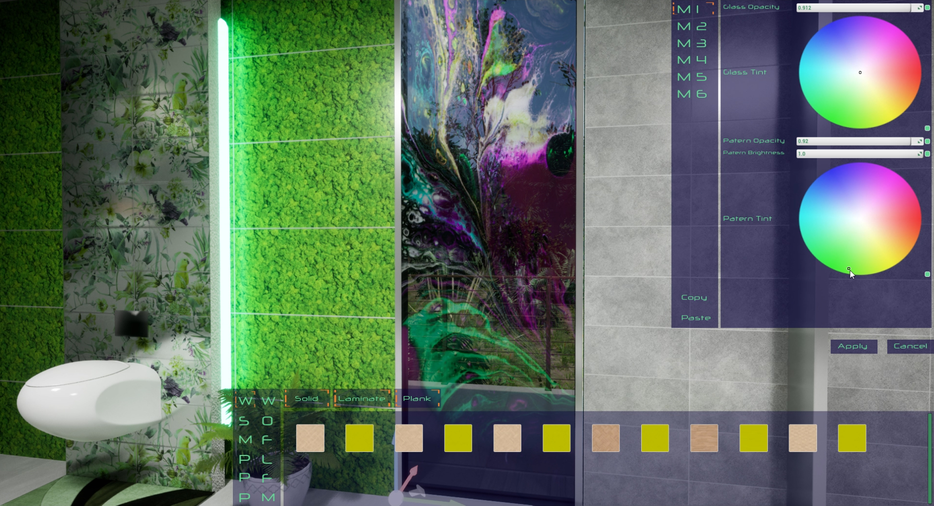 Design the look of each section with realistic textures in a large variety of materials. You can change colour, metallic properties, gloss and roughness of any texture available. Now you can customize even the opacity of your windows and add any pattern to them for a stained glass effect.