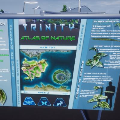 Adventure part of the game is based on researching the planet Trinity and it's resources, discovering features of local plants, animals and weather. An example how it is going to work in the game: before making a meal from a wiled plants, fruits, vegetables, fish, or animals – a botanist or zoologist has to find it first, then scientist at a lab will check it, and then from radio/TV results will be told to the public. Afterwards chefs will figure out some dishes with new ingredients. And only after all that, new recipes will be available for the public at cooking books and magazines. Before that, on the first level of the city, citizens will eat supplies brought from Earth at local canteen for free. Then that canteen will be changed into bistro and new dishes and beverages will be sold for money. Also, characters will be able to buy new food ingredients at local grocery store and try to cook new recipes by themselves.