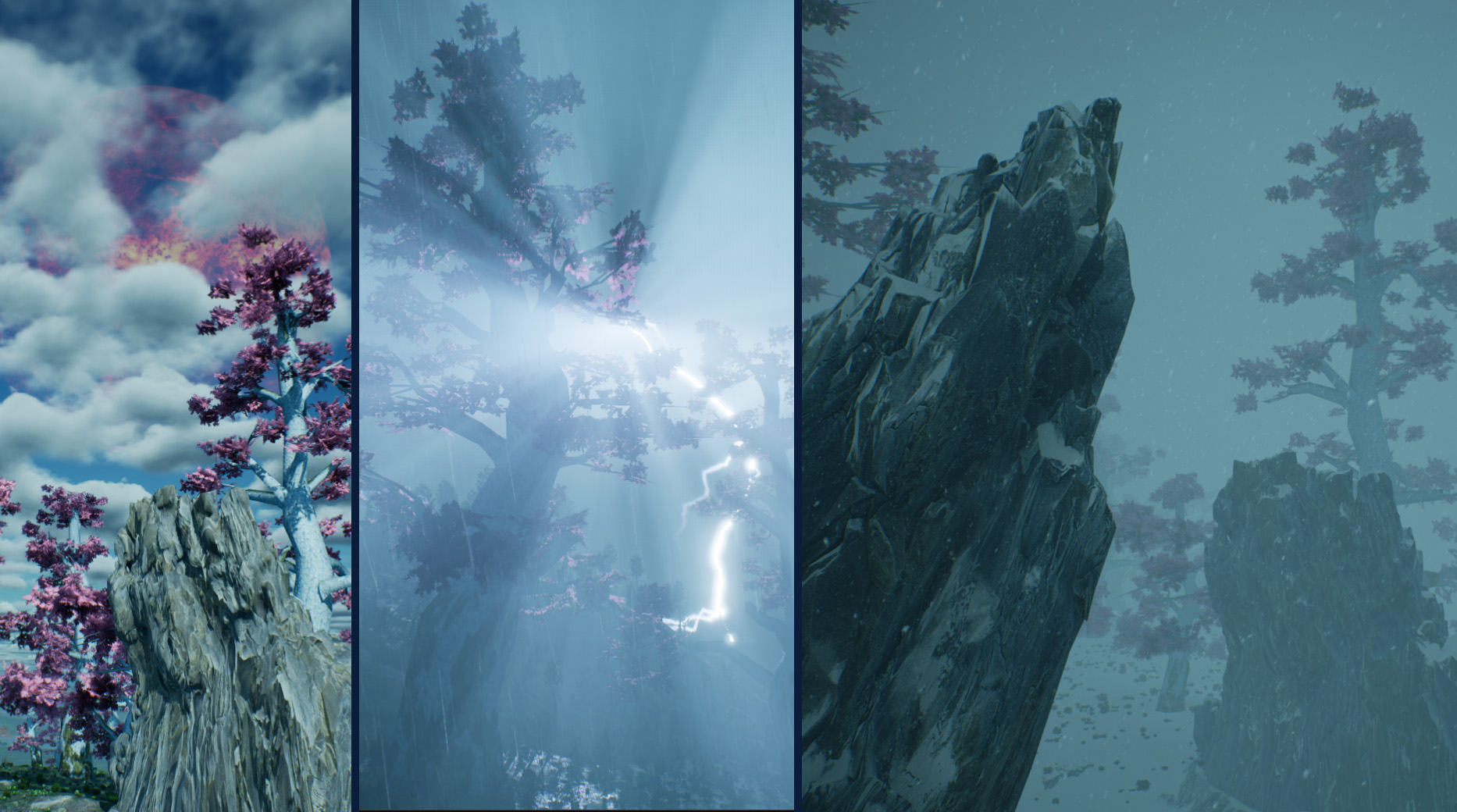 The weather on the first forest continent is pretty much the same as on the Earth: four seasons – winter, spring, summer and fall. All three other continents have almost stable weather – without big changes during a year. But unexpected local cataclysms occurs – strong wind or sand or snow storms, showers with hail and thunderstorms. About that will be warned on TV or radio. But consequences always different and unexpected. That adds suddenness and living processes to the game.
